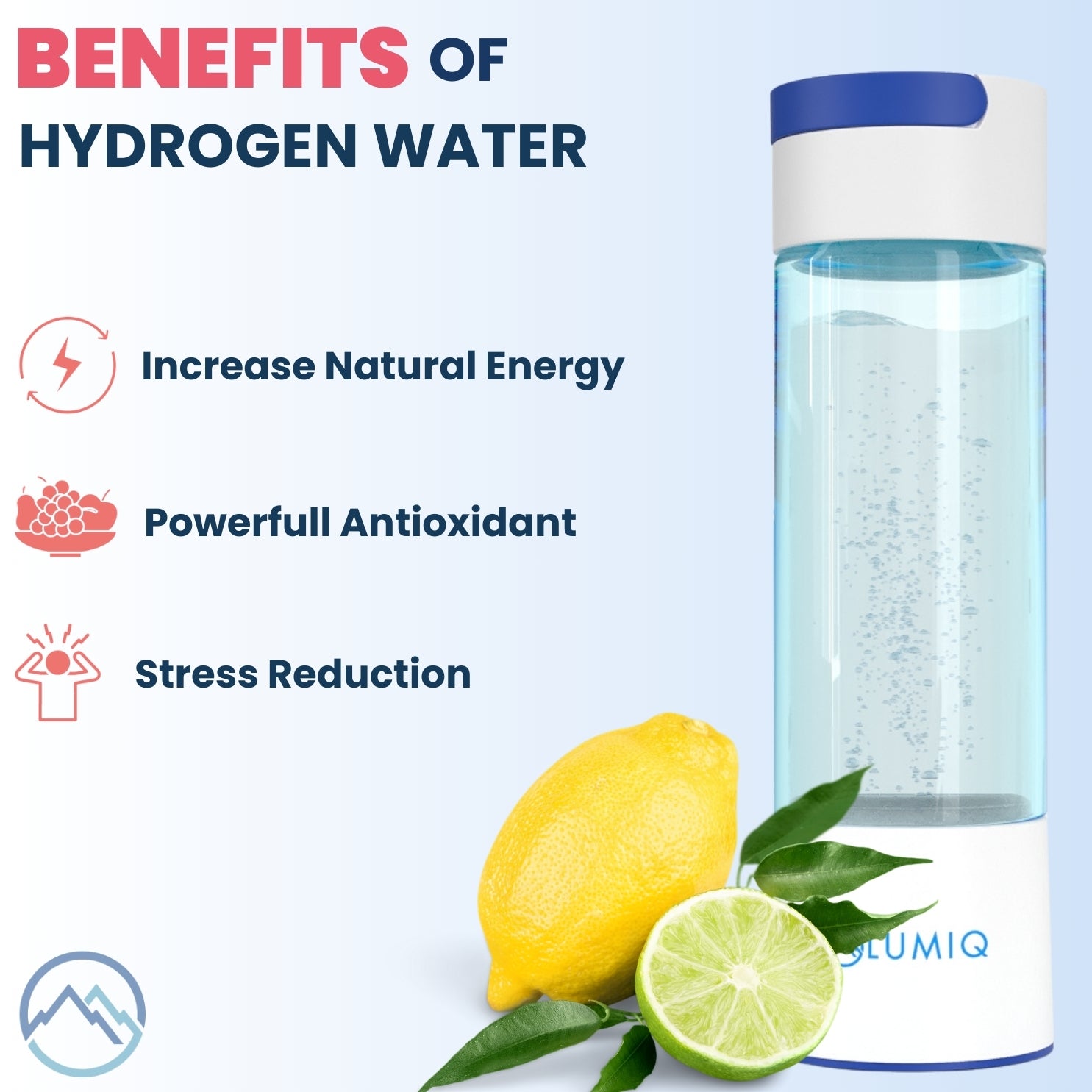 *Based on an independent claims validation of 120 people over 30 days using the LUMIQ® hydrogen water bottles.